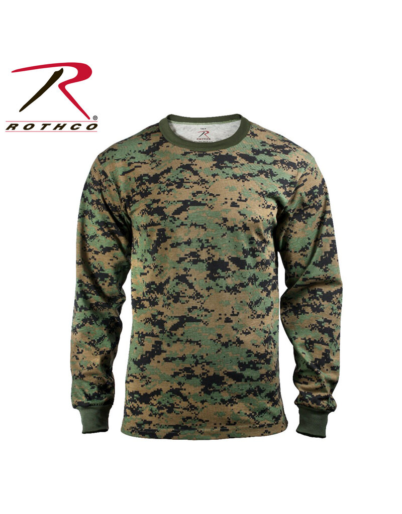 Ce t-shirt à manches longues et camouflage numérique de Rothco est fait d'un matériau confortable et durable composé de 60% de coton et de 40% de polyester. Il est offert dans une variété de motifs de camouflage numérique.