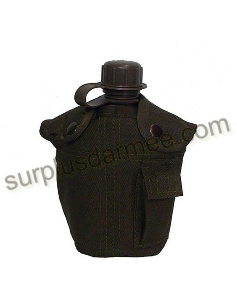 Gourde en plastique avec son etui couleur Kaki Olive , Attache au dos de l'étui pour mettre a la ceinture. Neuf.